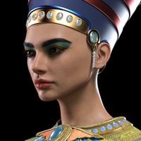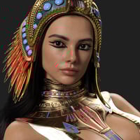 The product comes with custom head and body shapes, HD details, PBR and Uber material presets, fibermesh brows and anatomical hair, 10 modern and 14 Egyptian makeup and 10 lipstick options, 7 custom expressions, and 8K normal maps.