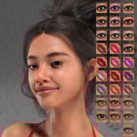 The character comes with custom head and body shapes, HD details, PBR and Uber material presets, various makeup, lipstick, and nail options, 7 expressions, 8k normal maps.