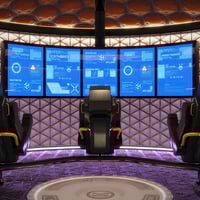 There are 3 detailed pilot seats and modern interactive touch screens for the pilot to interact with.
