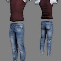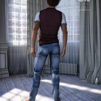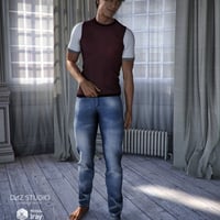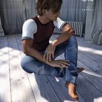 Detailed subdivided jeans and t-shirt for Genesis 3 Male figures includes pose helper morphs for knee and leg bends, pose matching morphs for Sitting 01-05 Common Man pose set and lots of adjustment and shaping morphs for added fun.