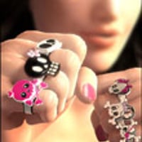 Eight goth styled Cutey Skull rings to add detail to all eight fingers on both hands of V4. Each one of the eight skull designs can be loaded on the four individual fingers of both right and left hands excluding the thumbs. Specifically these are LIndex1, LMid1, LRing1, LPinky1 and RIndex1, RMid1, RRings1, RPinky1.