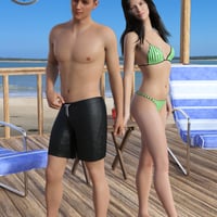 Get ready for the summer with "JW Swimsuit set", this pack contains a bikini for Genesis 8 Female and and Shorts for Genesis 8 male, with several morph dials and textures to adjust the prop as you prefer.