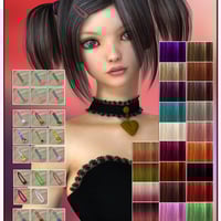 This is a additional set for Kiriko hair. It includes 25 new colors, 25 stripe hair options and 32 new Clips, Pins and Rubber Options.