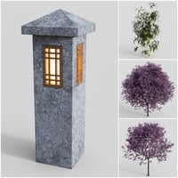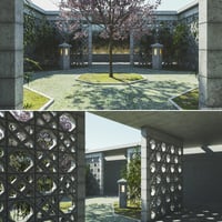 Included are two variations of the blossom tree.One which is more mature and fills the scene with branches, and a younger version to allows more light to flood the courtyard.