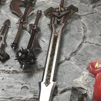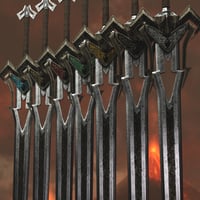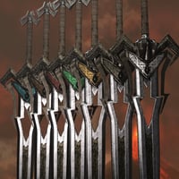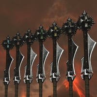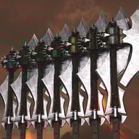 These finely-forged and detailed props are crafted in the tradition of ancient fantasy and feature a broadsword, dagger, halberd, mace, and axe.