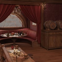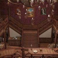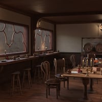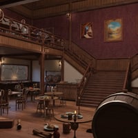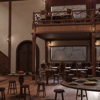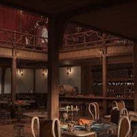 This is like a cool retro bar where loads of adventurers hang out, swapping info and trading stuff. You can even chill in private booths, sip on rare wines, and chow down on delicious food.