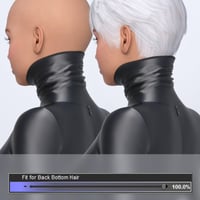 The collar of the suit hugs the neck tightly and high. But if you need to use hair with a low back, you can use the "Fit for Back Bottom Hair" parameter.