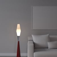 Triangle torchiere: Mod but every day this uplight is ideal for up light beside doors and in corners.