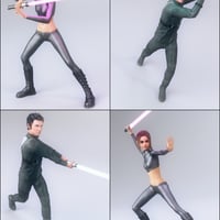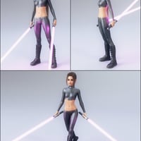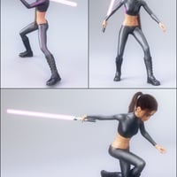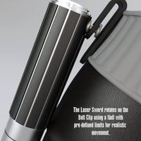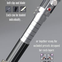 There is one laser sword with its own blade prop and belt clip. The laser sword can be loaded by itself or directly to the left and or right hand of the supported figure with the blade already attached. The laser sword and blade can also be loaded up parented to the belt clip which will be parented to the pelvis of the figure.