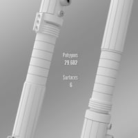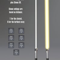 The laser sword and belt clip have one material preset each and the blade has 7 material presets. The blade material presets turn the blade into a mesh light. To create the glow effect, there are 6 bloom options available. The bloom options are based on distance. Setting 01 is for close ups with the laser sword and setting 06 is for the furthest away. There is also a bloom off option provided for easy access. Please note, the bloom setting is a global setting and will affect ALL lights in the scene that are visable to the camera. The bloom effect is not seen if the background of the image is transparent.
