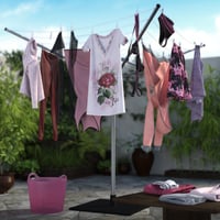 The clothes hanging from more than one pin feature various wind and swing morphs, plus a morph to adjust the clothes to the dryer's sagging line morph (where applicable).The clothes load with one level of Sub-D applied for a smooth look; you can easily dial that up or down as your scene requires.