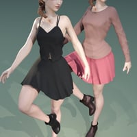 This Layered Camisole Set for Genesis 3 Female(s) consists of a Camisole, Undershirt, Skirt and Short Boots.