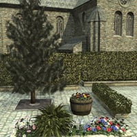 A set of twenty-one plant related props: from trees, to flowers, to bushes, to hedges, to planters, to accommodate all your village scenes.