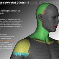 • Legacy UVs for Genesis 9: Genesis 3, 8, and 8.1 Male by: Cayman Studios, 3D Models by Daz 3D