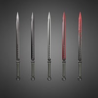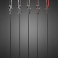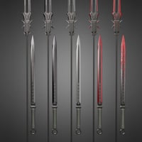 It comes with 1 knife and 1 staff version. They have material configurations so you can combine them to your liking, shape adjustments for the staves, and poses for both the right and left hands on male and female characters.
