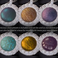 There are 126 modifiers which affect individual aspects like Secondary Luster, Normal / Displacement Maps and tiling settings. It is very easy to use and intuitive. You can achieve a unique gemstone look, texture a castle wall or populate a scene with naturally diverse looking stones.