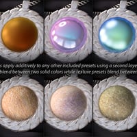 Included are 186 mineral presets representing both real and fantasy stone looks. Made from 18 4096x4096 seamlessly tiling high resolution proceduraly tiled textures (with bump and normal options for each) and 10 displacement choices with normal map variants. Some "Color" presets are included which are based on greyscale versions of the maps so you can easily easily customize your hue using Base Color and Diffuse Overlay.