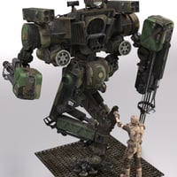 Standing over sixteen feet tall, the LG09 is a heavy level mech featuring a complement of various weapons and many moving parts. The arm ares designed to accept various weapons and implaments including gatlig guns, jaws-o-life and the viscious K-12 saw.