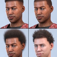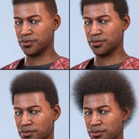 Created using fiber mesh, here's a short afro for your men. I've taken a different approach to the skull cap and treated it as a separate item, providing five assorted textures to suit.
