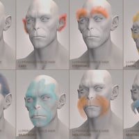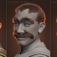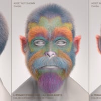 Here's what you'll find inside: individual components like beard, brows, ears, goatee, and more. And because I love giving you even more creative control, I've included a special bonus: LI Primate Prince Hair - Combo. This single mesh blends some of the assets into one refined, unified piece. While it doesn't work with the hierarchical materials, it's perfect as a foundation for adding and integrating the other assets. The Omni-surface Shader builder presets will help you refine its look.