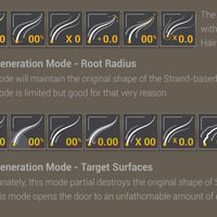 There are also 4 x subtle variations of a more static look Anime Hair built upon the Hair Generation Mode - Root Radius, but don't be fooled...switch these to Target Surface Mode and you then have four more curved-based guide foundations to style and build upon.
