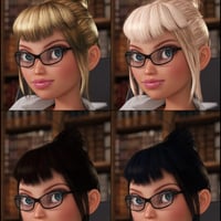 The hair includes 20 mats: 14 natural colors, and 6 fantasy colors, and has 33 custom morphs in 9 categories, allowing movement of the sidebangs in all directions, independent for left and right sides, and also make them longer or shorter. You can also make the forehead bangs longer or shorter, or control the hairline height. There is also a morph that moves the strands of the bun, useful for simulating movement for animations. Although this is a pinup hair, it is also suitable for fantasy characters as several adjustment morphs have been included to adapt it to custom elven ears morphs.