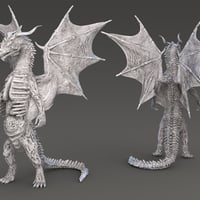 The black, white, and red look feature extra pale skin, black horns and bones, and highly translucent wings. A nightmarish disease infects the dragon's body and is also present in the material that hangs off of his ribs.