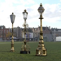 Lightposts - Classical includes 3 classic light posts to decorate your city. The set includes black and bronze materials, plus detailed ornaments. Add them to your prop collection today!