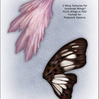 - 2 Wing textures for Universal Wings (available in the DAZ free archive) PLUS wings in psd format for postwork options