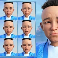 Express his attitude in this journey with Little Fighter Expressions for Genesis 8.1 Male and Kayden HD 8.1. This pack contains 40 different expressions divided into Angry, Happy, Sad, and Surprised categories. Choose the intensity of the expressions or combine them with the morph dials included.