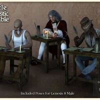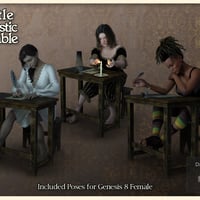 The Little Rustic Table is a nicely detailed set, which includes a table, matching stool and a small collection of desk props. Included in this set is a small compliment of starter poses for both Genesis 8 Male and Female. There are some very usable props included in this set, which can be mixed and matched with other props in your runtime to add extra little details your scenes.