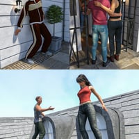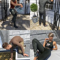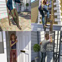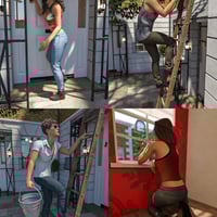 A set of 20 poses for Genesis 8 Male and Female for use with the London Courtyard scene. This set includes several detailed props of an extendable ladder, jointed bucket with morphable water, morphing sponge, wiper, canvas sheet and steel bucket hook. Optimised for DAZ Studio and Iray.