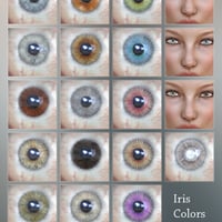 Look at me! This set contains ten realistic iris textures that were all textured from different photos. You will also find five contact lens colors, three sets with mixed iris colors as well as five special looks that are perfect for zombie, gothic or horror renders. Complex shaders for both Poser and DAZ Studio are included to achieve realistic results in both applications.