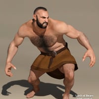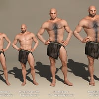 Bring a rugged presence to your renders with fully custom HD morphs and textures. This set features the standard appearance, a version that adds a bit extra weight for hibernating, a primal version that shows the animal that lies within the human form, custom claws, vein maps and a brow morph that gives him a bit fiercer look.