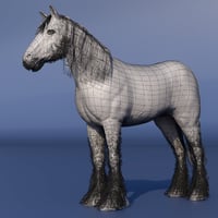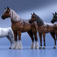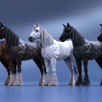 LoREZ Horse 2 is highly detailed and comes complete with hair and tack. It has been set up with sub-division for extra mesh resolution but can also be used at its lowest setting, which is perfect for a background figure. Textures are also at 4k and 2K. It includes material options for bay, dark brown, and black, each with 3 separate versions. There are 4 white texture versions. The horse has several breeds and body type morphs such as an Arabian, Emaciated, Shire, Shetland, Slender, and Foal.