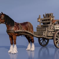 There are fully-fitted reins and tack for the LoREZ Horse 2. All parts of the cart move with an axis point over the axle, and there are rotating wheels and a swinging lantern. Poses are available for Genesis 8 Male and Female.