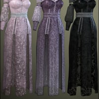 Bring some magic to your wardrobe with this enchanting dress for your fantasy girls! Lothriel is a romantic new ;fantasy outfit for your Genesis 3 Females. Lothriel includes a full length gown, panty, butterfly necklace, butterfly bracelet and butterfly prop. This set is complete with five textures in enchanted forest green, cool ocean blues, soft and romantic pinks, twilight purples and midnight black.