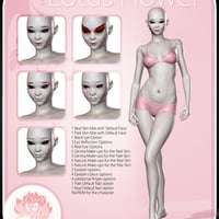 In this pack you will find a beautiful, oriental inspired character for Aiko 4, with her own beautiful lotus inspired headpiece.What's Included and Features