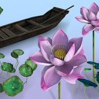 This set is delivered with a boat and its pole and also items, declination of lotus leaves or lotus flower.