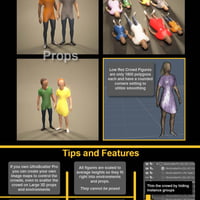 Introducing Low Rez Crowds – the revolutionary solution to effortlessly infuse life into your scenes without bogging down your computer's resources! With each figure boasting a mere 1800 polygons, and crowd scenes totaling just around 35,000 via instances, this product redefines efficiency, allowing you to maximize your creative potential without compromise.