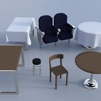 Props - basic table, chair, and table cloth to make any scene into a restaurant. Modular movie theatre chairs to watch a show anywhere. Tableware and dishes. Wearable options for all the glasses, cutlery, and dishes with eating and drinking poses.