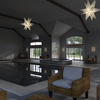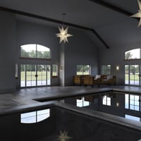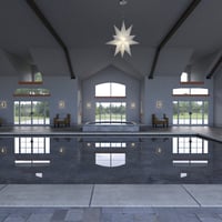 All 4 walls are removable, as well as the ceiling. This set has 6 entrance points with a total of 12 glass pained doors that open and close. The set can be used as both an interior set AND an exterior set. It has a large pool and hot tub inside, with again lots of space, with extra high ceiling. It has 23 windows, along with the 6 glass doorways to allow natural light to flow into the building for ultra realism. High resolution textures give even more realism to the set. Luxury Pool House also includes a free HDRI, which also loads render settings, to give you the look and feel of a REAL Pool House. It includes a wicker chair and a wicker table, but you can choose to hide or delete these items and load this set with your favorite poolside furniture. The outside has 2 large patio areas, one with slatted overhangs. The outdoor space is great for adding trees, potted trees, shrubs, BBQ etc.