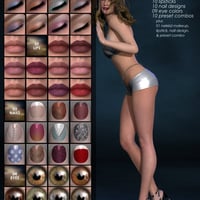 Included are Quick Start areas to get you going fast... full body morphs together with texture, 11 preset makeup combos which include matching makeup, lips and nails.... you can change around them however you want... no hard and fast sets. Just a suggestion of where to start. All of this to make getting started faster, so you can focus on making art.
