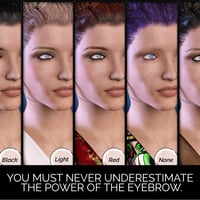Options include nine eye colors and lipsticks, plus, eight makeups.There are nine presets that include makeup, and lips for an easy all-in-one solution. 4 LIE eyebrows to customize Heather's looks. Buttons for Anatomical Elements and a No Brow face texture option are included.