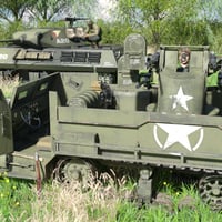 Introducing the M116 Halftrack, also known as the "meat chopper," a meticulously crafted replica of the iconic World War 2 fighting halftrack.