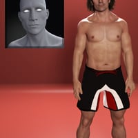 The base product includes four custom asymmetrical head morphs and one body shape with an additive smoother shape, with a toned HD additive morph for the base shape to add extra details. This custom shape can be loaded as a scaled character preset or as a base shape only. Each head morph has been sculpted in Zbrush and includes correctives for eye closes. The body shapes include over 50 additional JCMs for improved bending and muscle flexes and can be mixed in with other morphs from the Genesis 3 Male gene pool.