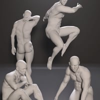 These morphs can be used at partial or full strength. The base product includes four custom asymmetrical head morphs and one body shape with a HD morph to add extra details. Each head morph has been sculpted in Zbrush and includes correctives for eye closes. The body shapes include over 50 additional JCMs for improved bending and muscle flexes and can be mixed in with other morphs from the Genesis 8 Male gene pool.