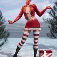 Celebrate the season with style and sass. M3D dForce Santa's Team Outfit for Genesis 9 brings a fun modern twist to the classic Santa's helper look. This festive outfit includes a cropped fur-trimmed jacket, mini skirt, keyhole top scarf, platform boots, striped stockings, gloves, cap, and panties, all designed to mix warmth, attitude, and playfulness