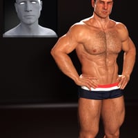 Each head morph has been sculpted in Zbrush and includes correctives for eye closes. The body shapes include over 50 additional JCMs for improved bending and muscle flexes and can be mixed in with other morphs from the Genesis 8 Male gene pool. The JCMs control the shape of the body during arm raises, sitting and abs bending.