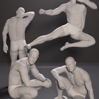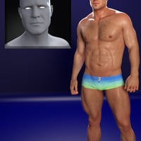 Each head morph has been sculpted in Zbrush and includes correctives for eye closes. The body shapes include approximately 50 additional JCMs for improved bending and muscle flexes and can be mixed in with other morphs from the Genesis 8 Male gene pool. The JCMs control the shape of the body during arm raises, sitting and abs bending. Nipple and a HD navel corrective is added and is activated when the default body dials are used.